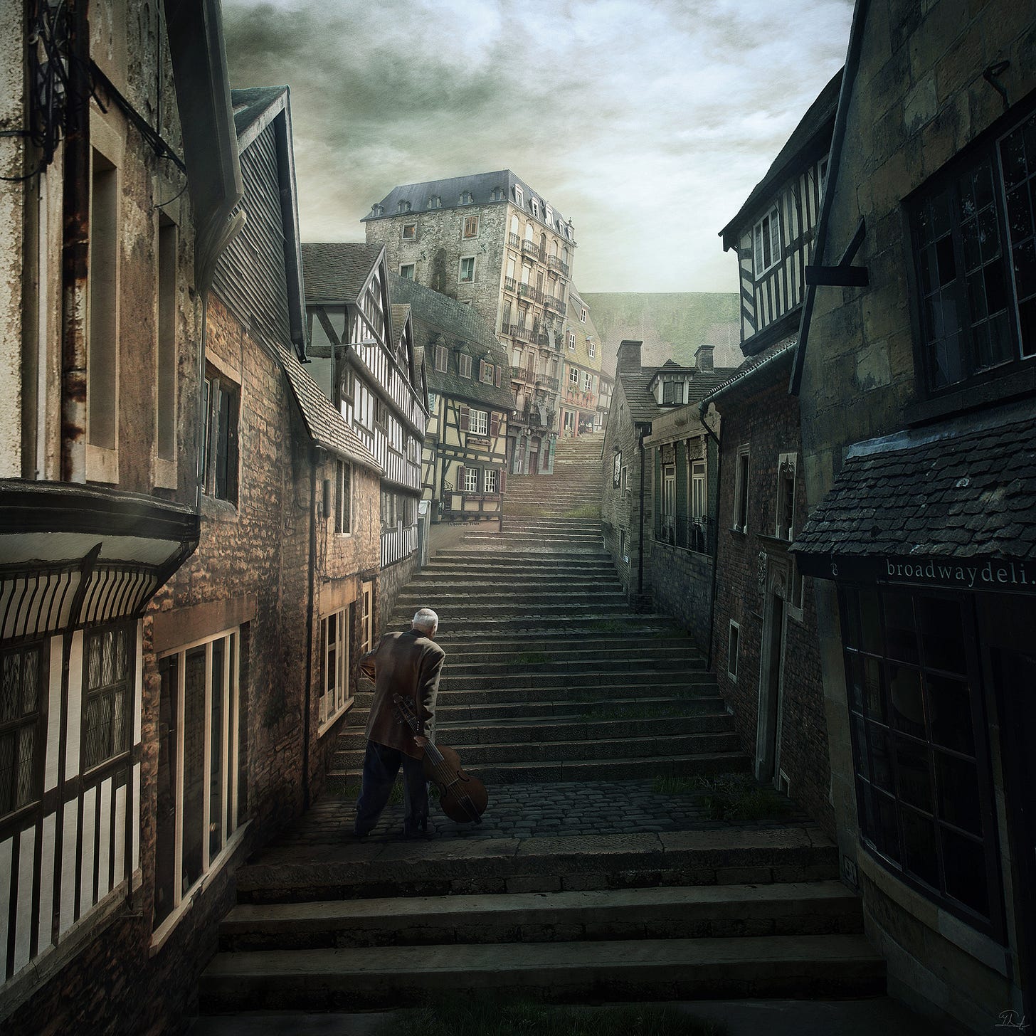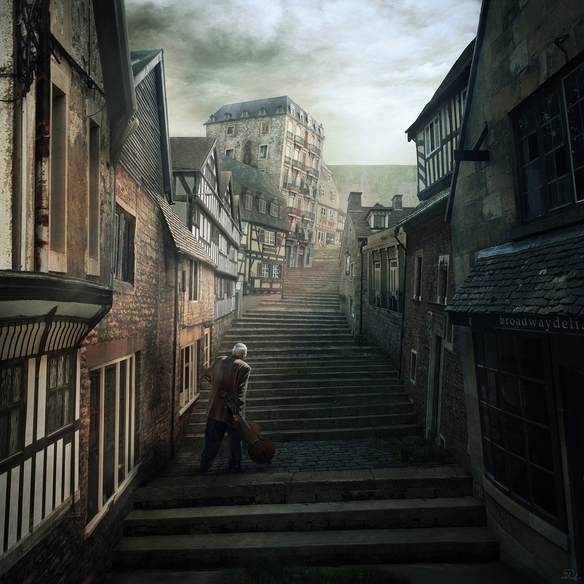 Perhaps my favourite short story by HPL. 2d matte painting showing old Erich carrying his viola. Make sure to check out the cyanotype version as well.